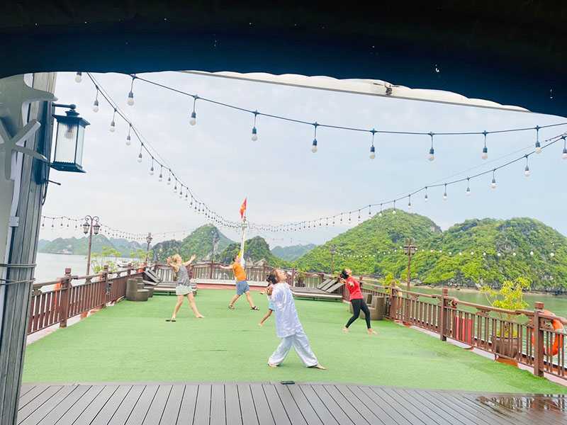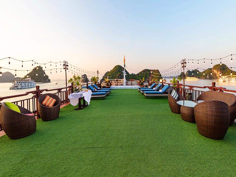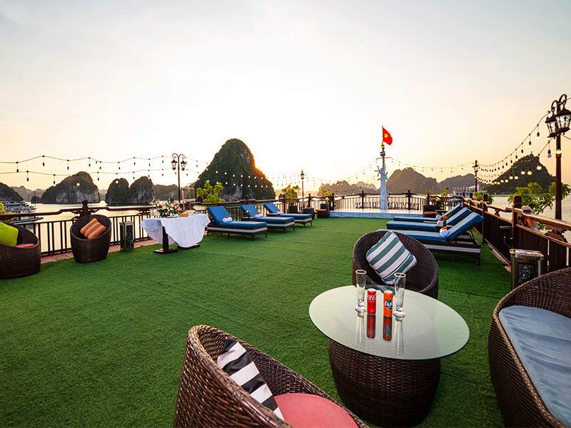 08:30 - 09:30 - Back on board, you can rest in your room, enjoy the herbal foot bath prepared by our crew, sunbathe on the sundeck, take pictures of Ha Long Bay, or shop for souvenirs on the boat.