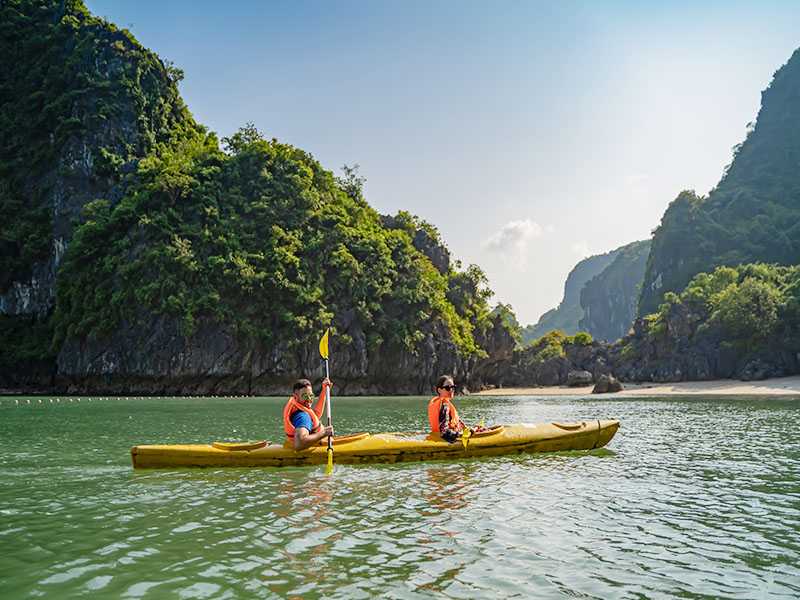 14:00 - You return to your cabin for a short rest and prepare for kayaking activities in Luon Cave. Arriving at Luon Cave area, you will participate in kayaking or rafting here around the thousand-year-old rock formations.