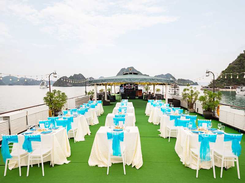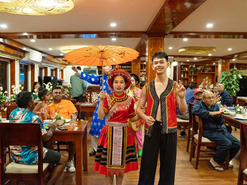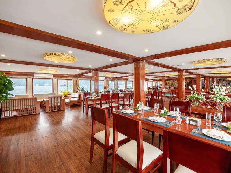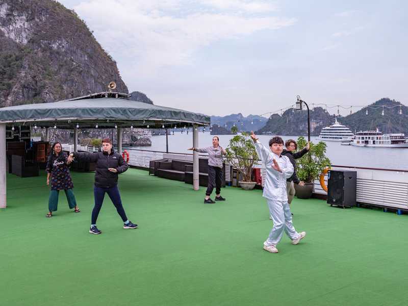 06:00 - Warm up your day with a Tai Chi lesson on the sundeck with a breathtaking view as the sunrises on Halong Bay. Sunrise photo-hunting in the bay is once a lifetime experience; however, this activity is not mandatory. You can choose to stay in bed.07:00 - 07:30 - Light breakfast is served at the restaurant.