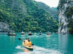7:00 - Explore Dark and Bright Cave - a frog-jaw-shaped cave featuring marvelous sparkling stalactites in various shapes and sizes on the arch-shaped ceiling. You can experience sitting on a bamboo boat rowed by a local or Kayaking* to admire the cave's interior.