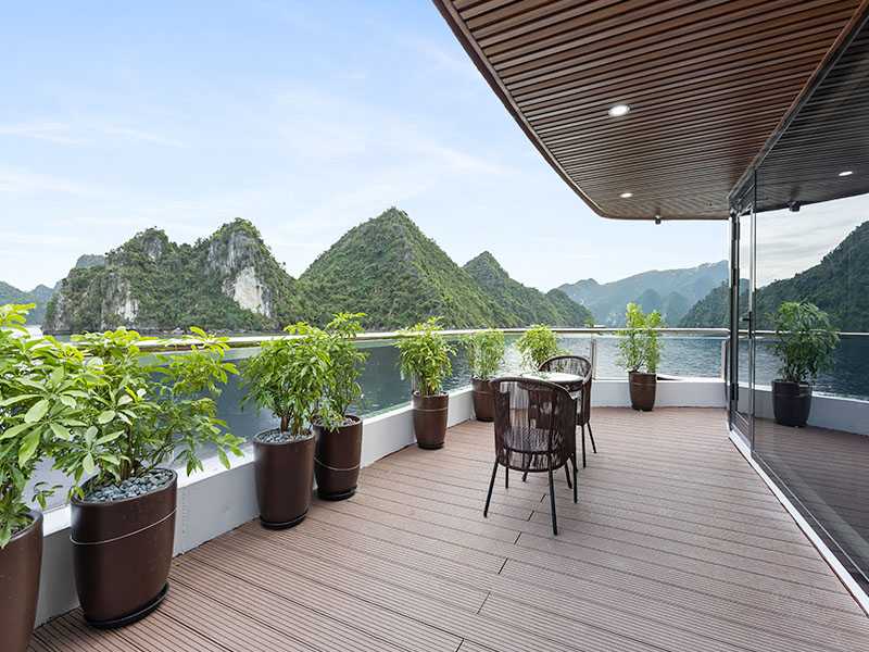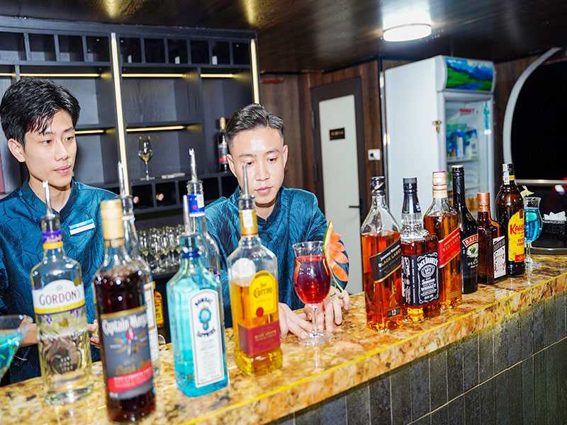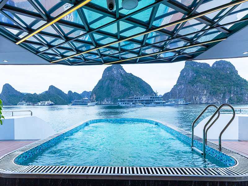 Relax on the cruise. Don’t miss the sundeck to witness the stunning sunset, join the sunset party, and participate in a Vietnamese cooking class.