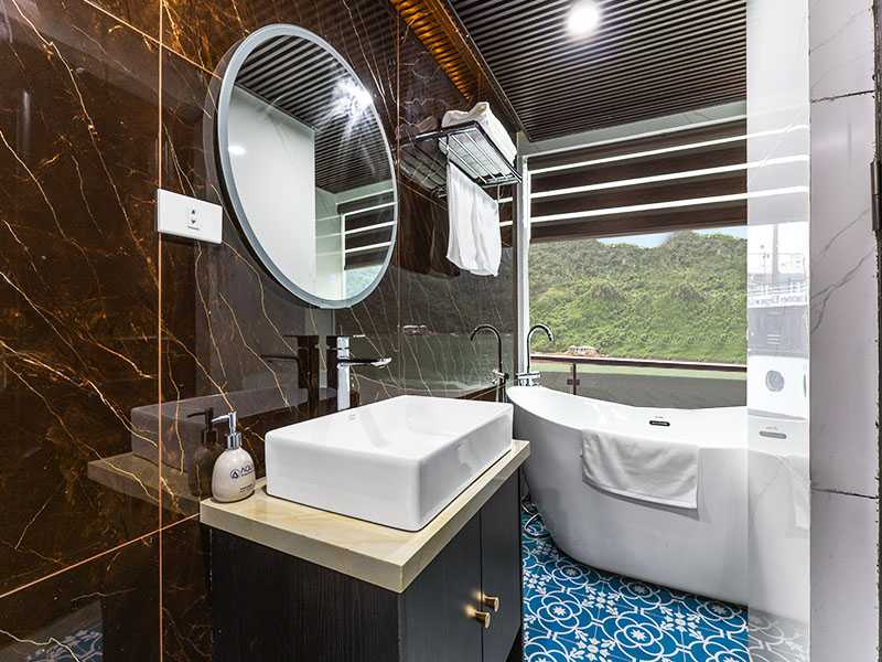 Spend the evening admiring the magical night scenery from the sundeck, enjoying drinks at the bar, trying squid fishing, or singing karaoke. Spend a peaceful night onboard Aqua Luxury Cruise, embraced by the serenity of the bay.