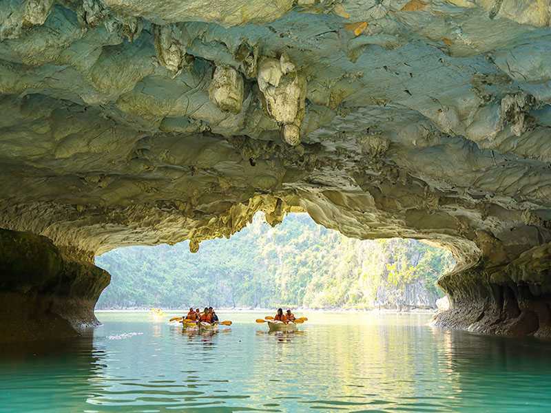 14:00 - Luon cave excursion on bamboo rowing boat by locals or kayaking. This is one of the must-do activities in the bay