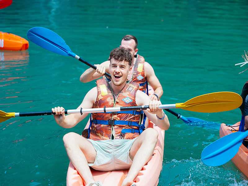 - Use of kayaks/bamboo boat to discover the bay