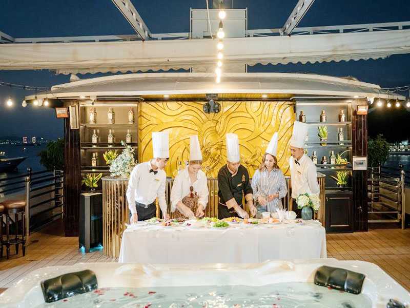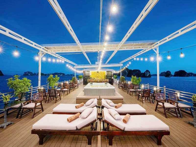 17:00 - Back to the main cruise, it’s the best time for doing whatever you want. Relaxing at the outdoor jacuzzi, sunbathe on the sundeck, experience a spa treatment...The cruise moves to the overnight place