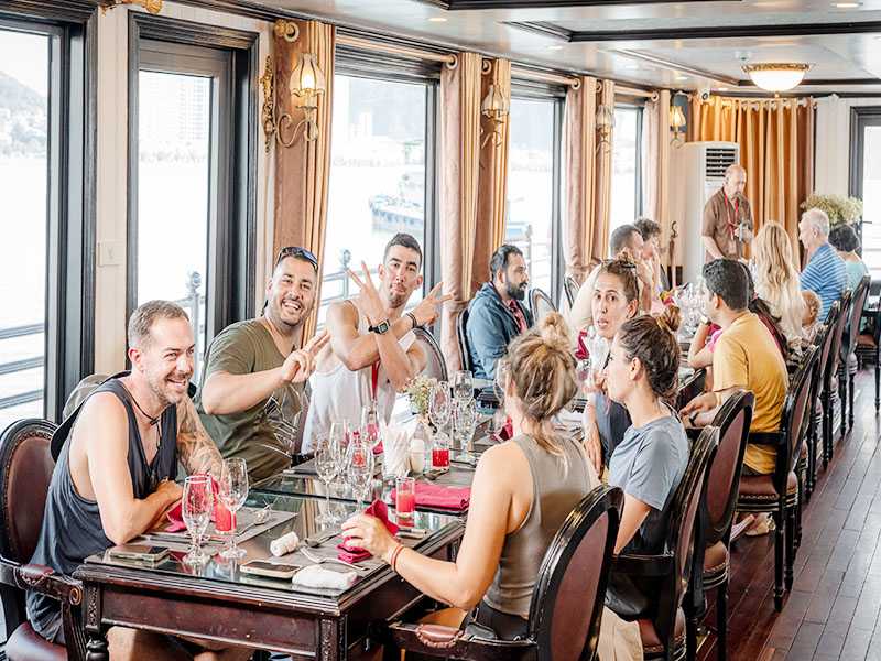 12:45 - Lunch is served at our cozy restaurant. As the cruise departs towards Halong Bay - a natural wonder of the world, absorb yourself in the gorgeous scenery and famous sights of limestone