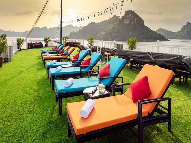 15:00 - Back on Aurora, Cruise, where guests can enjoy, relax with sunset over Lan Ha Bay or experience therapeutic massage services right on board.