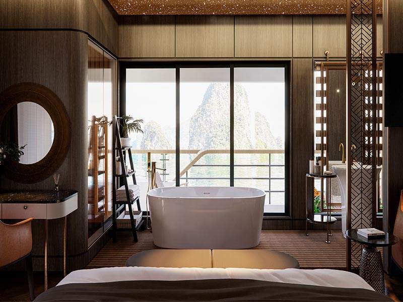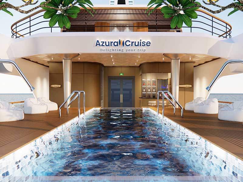 12:30 - 12:45 Check in on board Azura Cruise. Guests will be welcomed with a welcome drink and a cold or warm towel, followed by a cruise briefing and safety instructions before checking in to the cabin. The cruise then sets sail, and lunch will be served in the luxury restaurant while enjoying the scenic waterways en route to the bay.