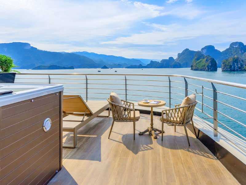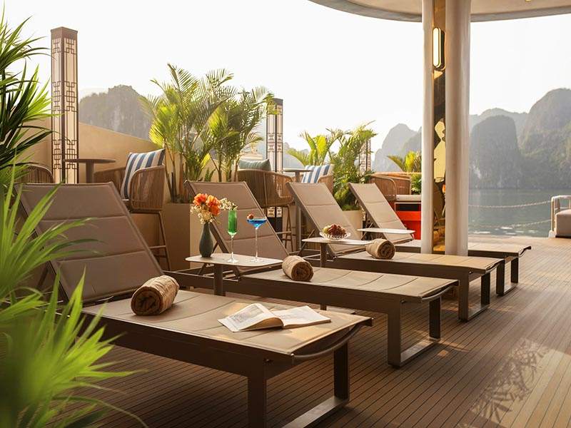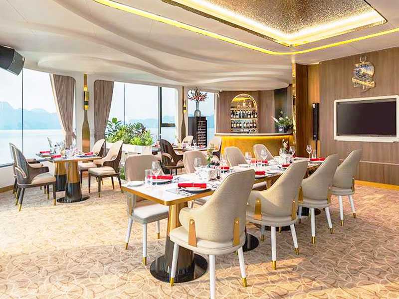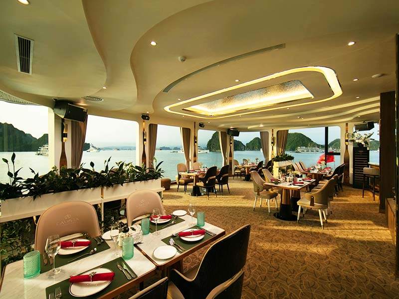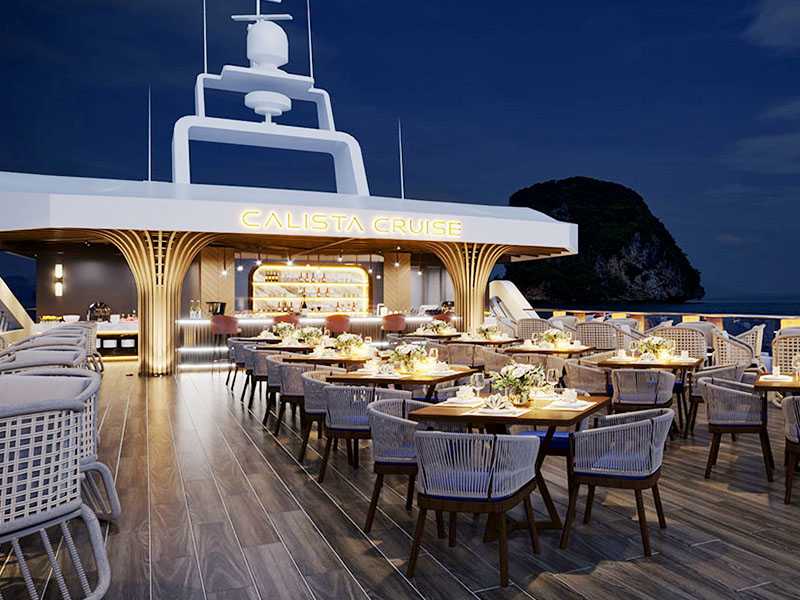 17:15 - Unwind as the sun sets over Halong Bay. Indulge in an elegant "Afternoon Tea" or your favorite drink at the Calista Breeze Bar. Take advantage of the Happy Hour "Buy 2 Get 1 Free" offer from 17:30 to 18:30, featuring exclusive Calista Cruise beverages paired with delicious light bites.
