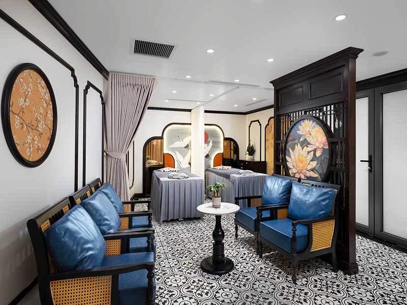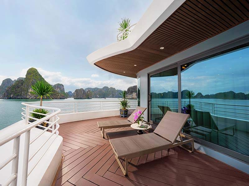 06:15 - Start your wonderful day with a Tai Chi class on the sundeck.08:30 - You will be transferred to the day boat to discover Ha Long Bay. Start to visit Cua Van floating fishing village by sampan boat or kayaking.