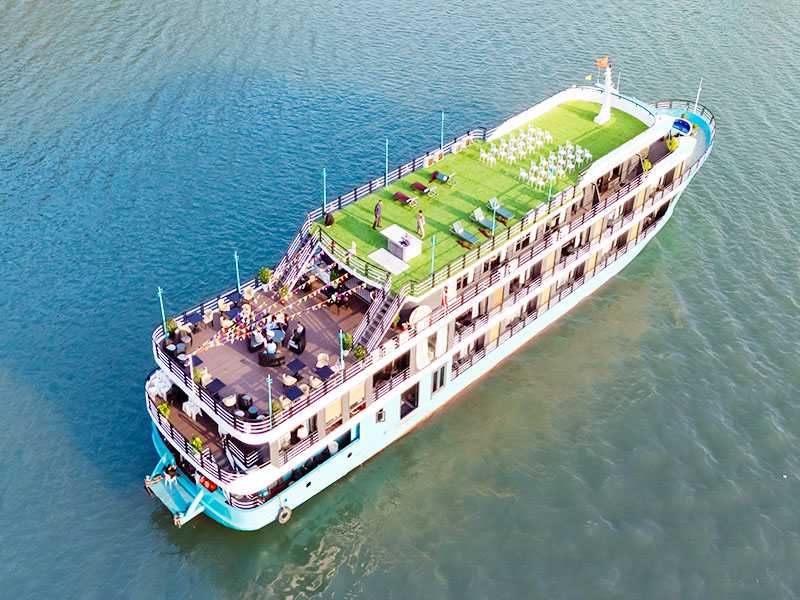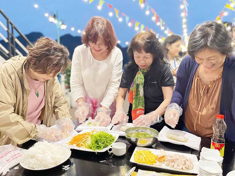 17:00 - We return to Dragonbay Premium Cruise and join some interesting activities such as cooking demonstration, sunset party and relaxing on the sundeck to catch the daily spectacular of a gorgeous panorama. Don’t miss the Happy Hour at our bar as well. After that, the captain will let the cruise stop at a quiet area of the bay.