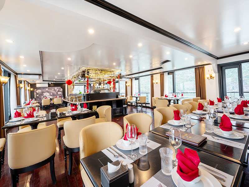 12:30 - The Cruise Manager and crew member welcome you onboard with guiding information and a safety briefing. Enjoy a fabulous lunch in our restaurant. During lunch time, our cruise starts to sail through the magnificent Lan Ha Bay, a geological extension of Halong Bay which is less visited, less inhabited and therefore has the extra appeal of being a more peaceful place. Check in your cabin.