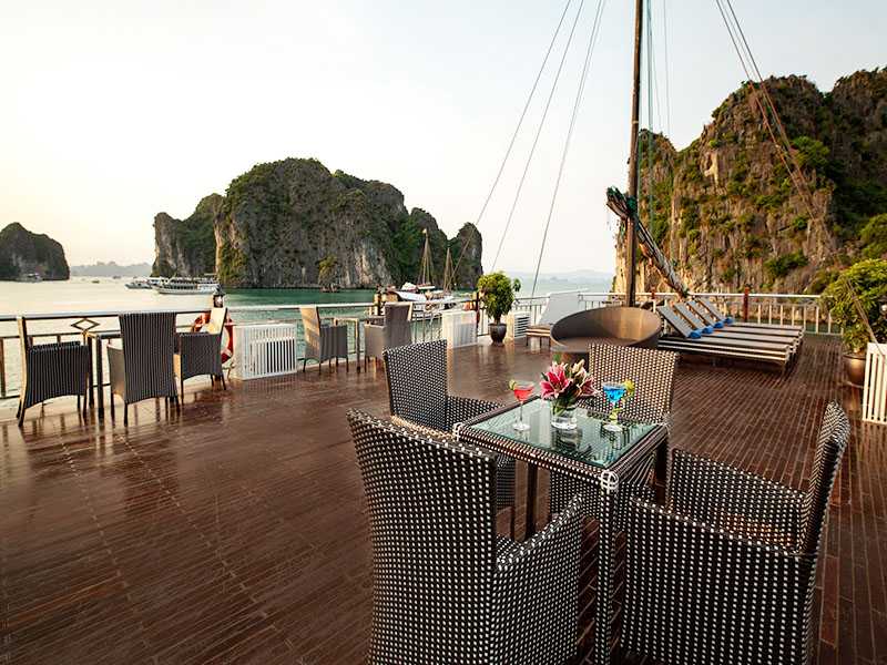 17:30 - Happy Hour offer from 5h30pm- 7h30pm on the Sundeck while the boat is cruising to Cong Do area to anchor for overnight