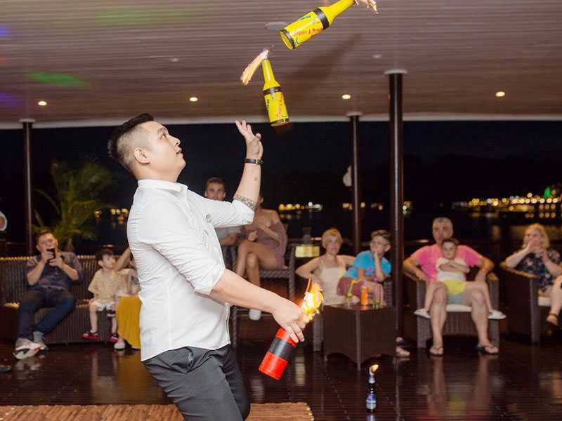 18:00 - 19:15 - You join cooking class and sunset party in the bar area on the cruise's roof. Listen to music and enjoy drinks, fruits, cakes... The cruise moves to the Tra Bau area to anchor for the night.
