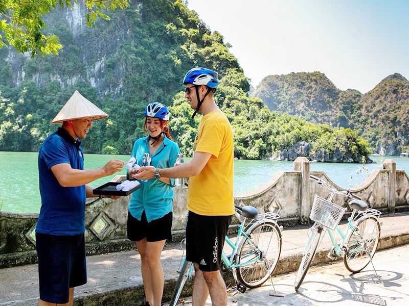 12:45 - 15:00 - Speedboat takes you on a further excursion to the vast and beautiful areas of Lan Ha Bay. Then go to Viet Hai fishing village on Cat Ba island. You cycle around Viet Hai fishing village to visit the beautiful natural scenery here, through the primeval forest, and visit the households of Viet Hai fishing village to learn about the daily life of the people.