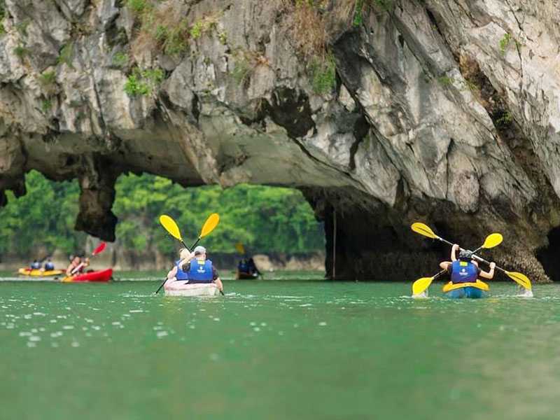 06:00 - Tai Chi exercise to start the day is held on the roof of the cruise. This is also the moment when visitors can catch the sunrise on the bay.6:30 - A nutritious breakfast served at the restaurant will help you enjoy the 2nd day on the bay full of energy. 7.30: Small boat takes you to the Tra Bau floating house, kayaking by yourself to explore the nooks and crannies of Lan Ha Bay.