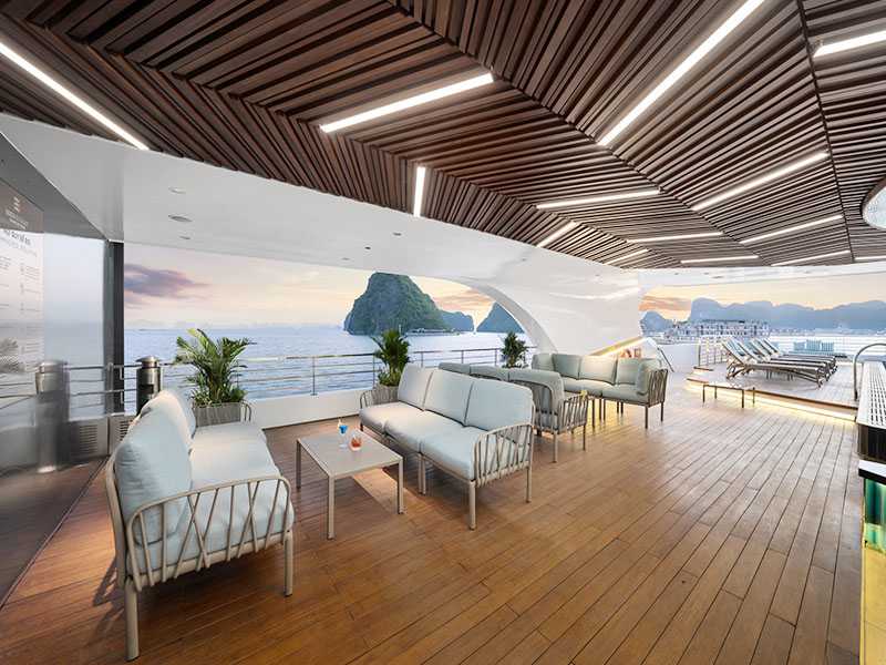 17:30 - 18:30 - Enjoy the best moments of the day as the sun hits the water between the dramatic limestone peaks and emerald-green coves, choose and savour Canapé and your favourite drink offerings at the Sky bar.