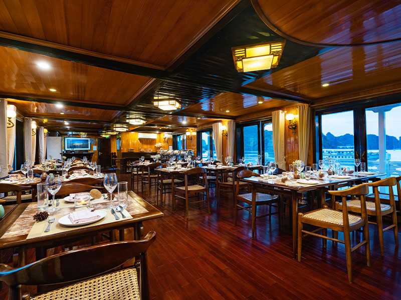 08:30 - 09:30 Back on the ship, you can rest in your room, sunbathe on the sundeck, or take photos of Ha Long Bay.