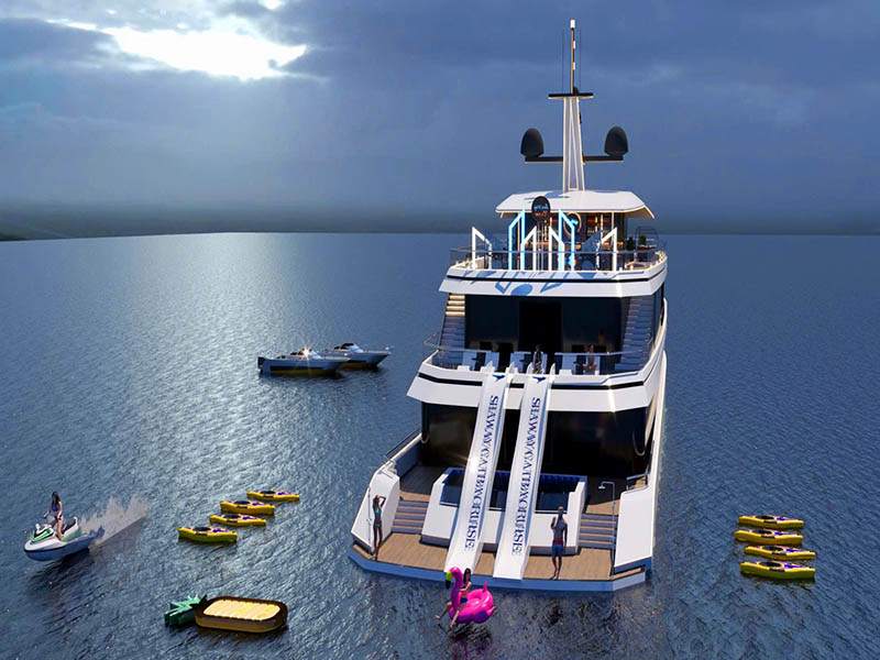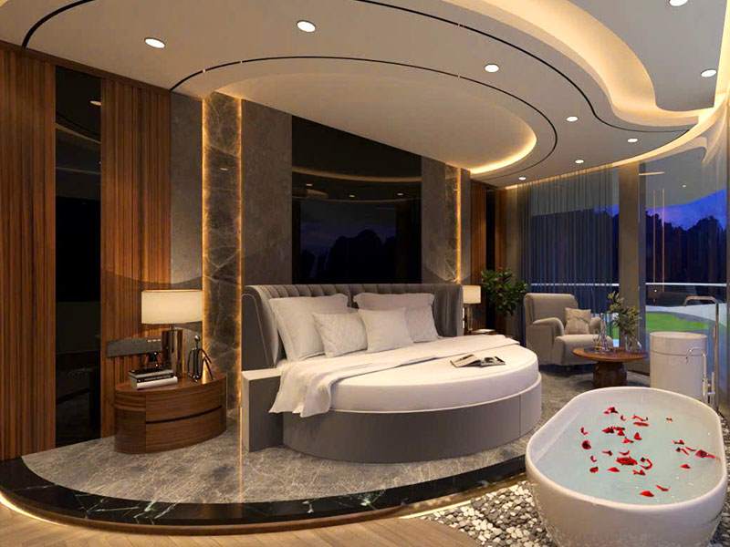 - 5-star luxury super yacht with a maximum capacity of 200 guests, featuring spacious areas and modern amenities