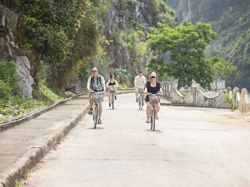 10:30 - 11:00 - After reaching Viet Hai jetty, the guest will have a great experience in cycling or having a ride on an e-cart to Viet Hai village through the tropical rainforest canopy and towering limestone mountains, also surrounded by the green. Learn about the villager’s daily life and how people built and lived in the bamboo thatched houses; the earthen walls are made of straw and mud