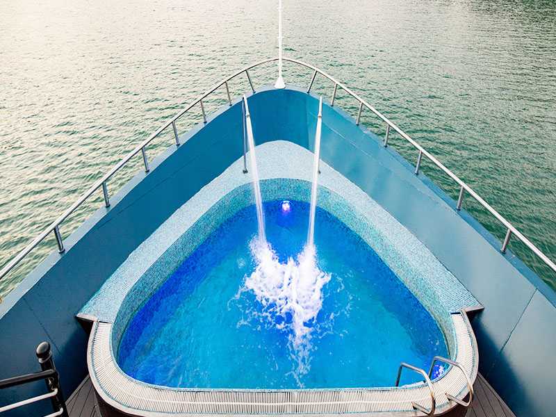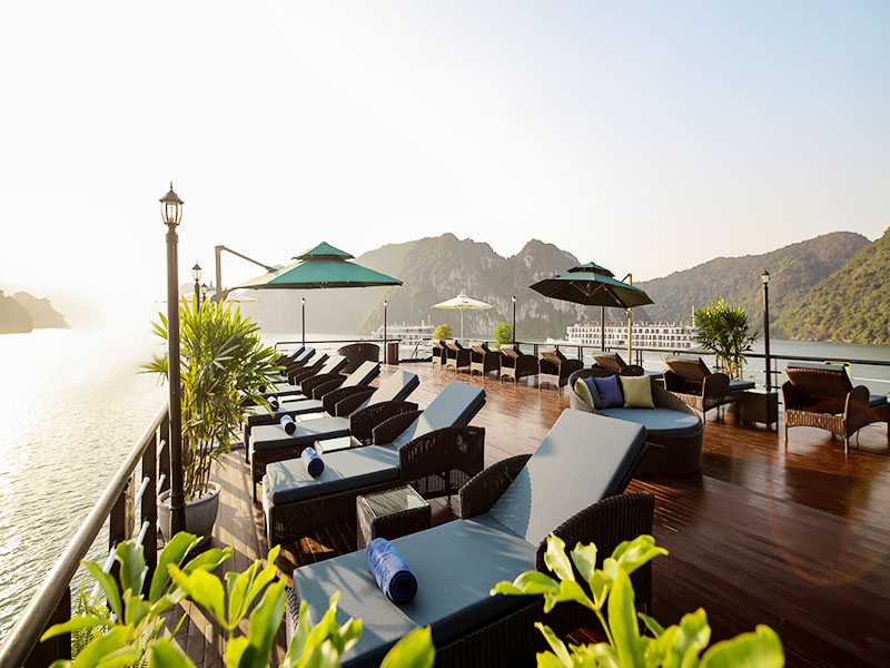 17:30: Summit on the sundeck for watching the magnificent sunset over the Gulf of Tonkin. You are invited to Sunset Party (we serve you local snacks and fresh fruits).