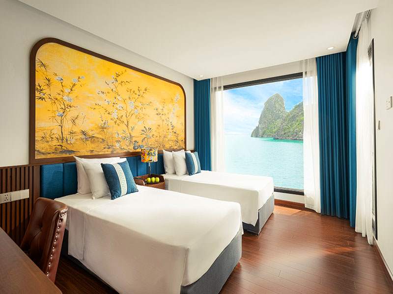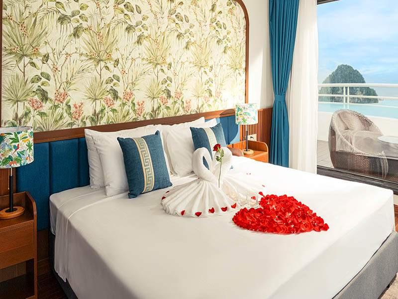 12:15 - 12:30 Transfer by tender or speedboat to the cruise ship anchored in the peaceful Lan Ha Bay area. Upon boarding, you will receive a warm welcome from our crew, enjoy a welcome drink, and attend a safety briefing by the cruise manager before checking into your cabin.