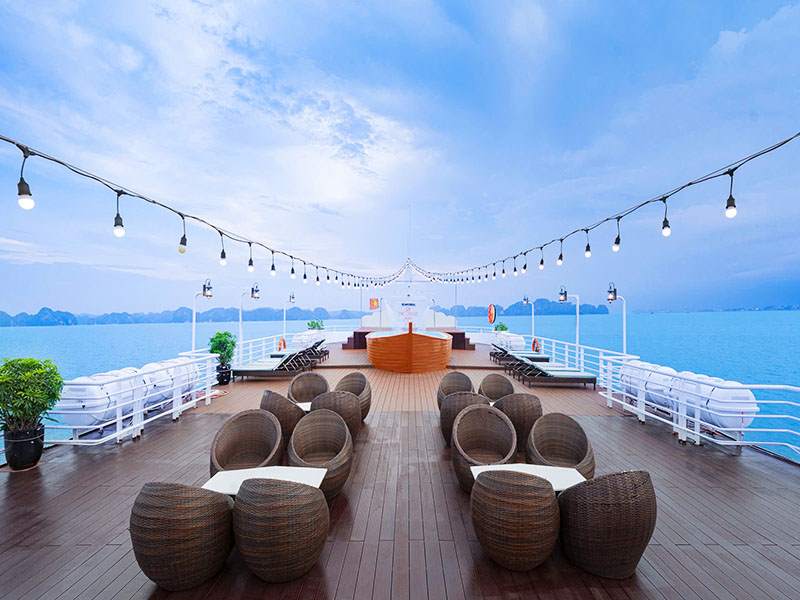 06:00 Wake up to the fresh air and poetic scenery of Lan Ha Bay. Join a Tai Chi session on the sundeck to ener - gize your new day.06:45 A light breakfast is served at the restaurant.