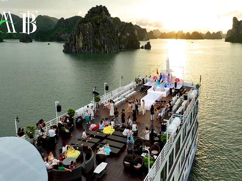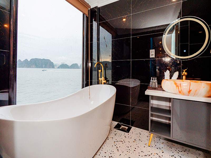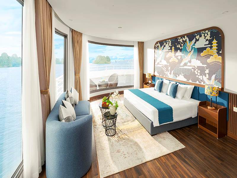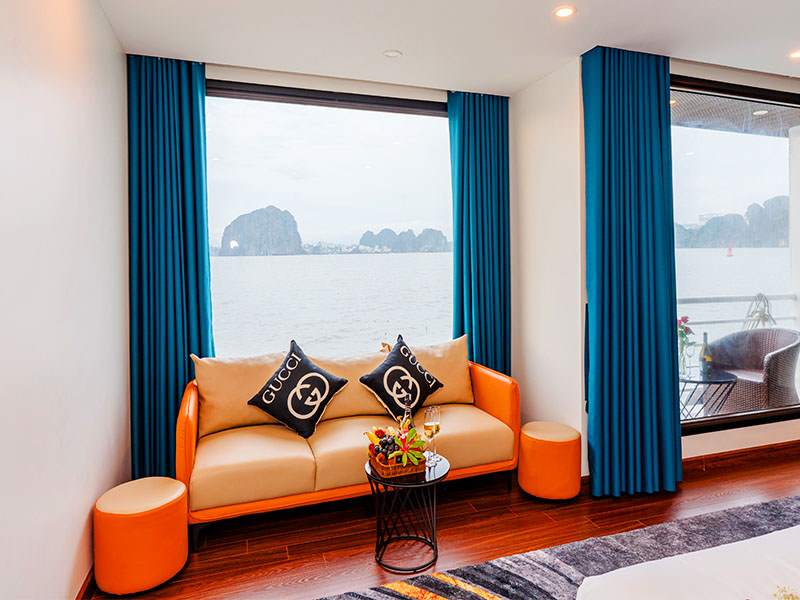 12:15 - 12:30 Transfer by tender or speedboat to the cruise ship anchored in the peaceful Lan Ha Bay area. Upon boarding, you will receive a warm welcome from our crew, enjoy a welcome drink, and attend a safety briefing by the cruise manager before checking into your cabin.