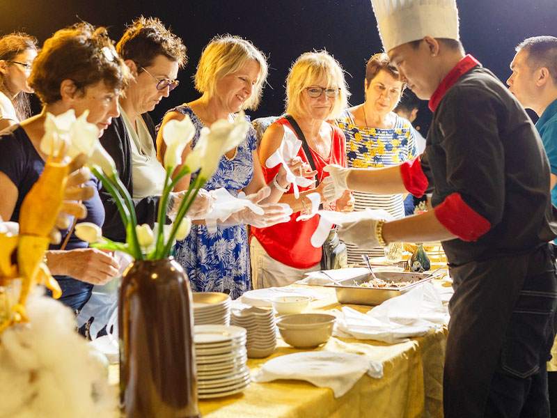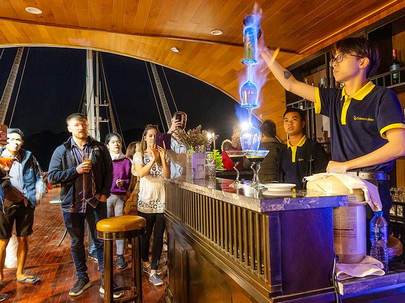 17:00 - Enjoy a sunset party on Lan Ha Bay. This is an ideal time for photography lovers to capture the magical sunset. You’ll also be invited to join a Vietnamese cooking class and learn how to make traditional spring rolls. Our captain will select the most tranquil area to anchor overnight.