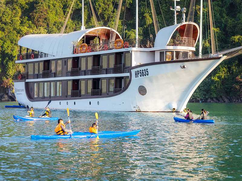 08:15- Join kayaking and swimming to explore Tra Bau – the famous filming location of Kong: Skull Island (2018) in Quang Ninh.