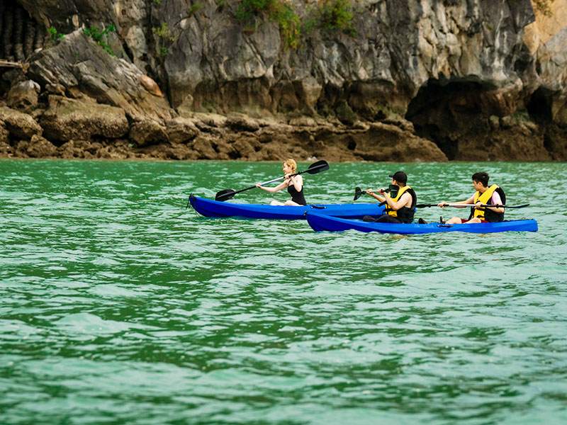 08:15- Join kayaking and swimming to explore Tra Bau – the famous filming location of Kong: Skull Island (2018) in Quang Ninh.