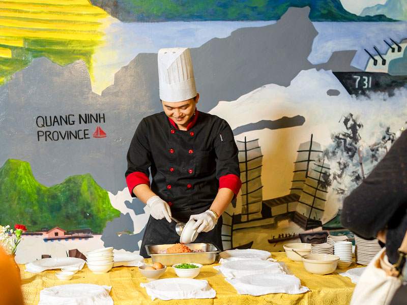 17:00 - Enjoy a sunset party on Lan Ha Bay. This is an ideal time for photography lovers to capture the magical sunset. You’ll also be invited to join a Vietnamese cooking class and learn how to make traditional spring rolls. Our captain will select the most tranquil area to anchor overnight.