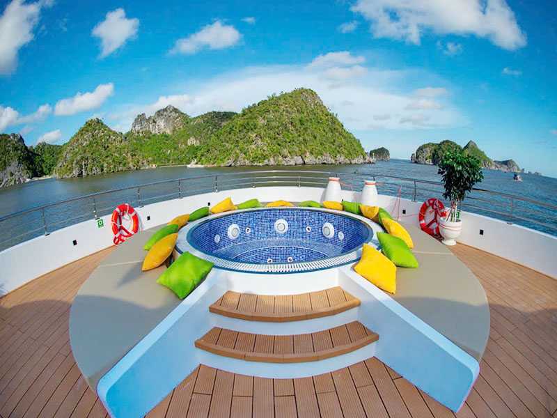 14:30 - Our Captain and Tour Guide will choose the best stop for the group to experience interesting activities: Swimming in the middle of the sea, boat- jumping, sliding down from the top deck to cool water, kayaking,....