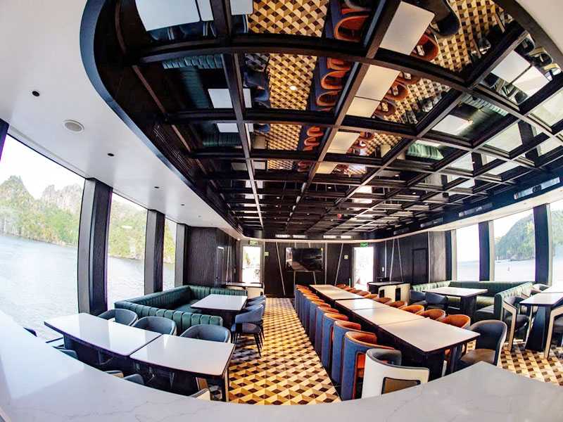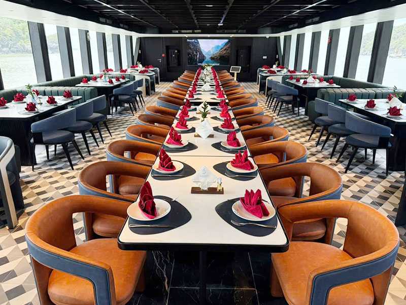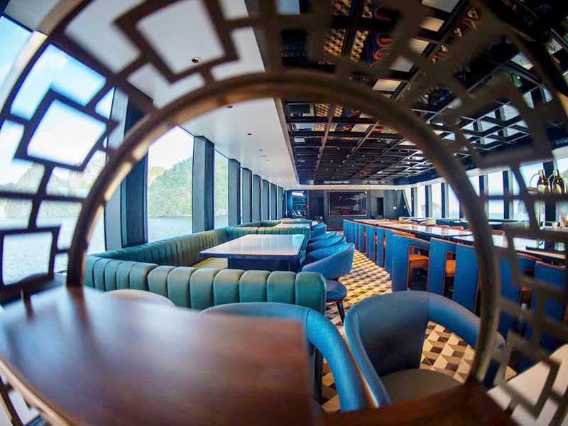 11:00 - Warmly welcome to SERENITY CRUISES! While enjoying welcome drink, our tour guide will provide key information about the cruise, itineraries, and other notes. Our captain steers the cruise slowly, and the poetic scenery of Cai Beo ancient fishing village constantly appears with floating houses lying along the mountainside. You will be surprised at the peaceful beauty of this 7,000-year-old village. The cruise moves further into the core of bay where you can't help but be amazed by the gift of Mother Nature: a large bay area, the phenomenal emerald water embracing hundreds of rocky islands of various sizes and shapes.