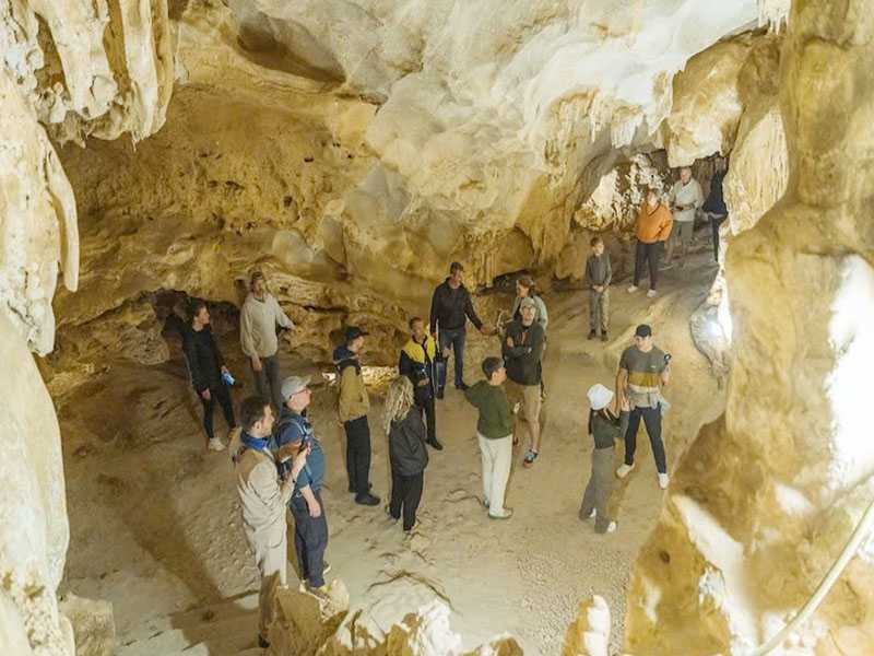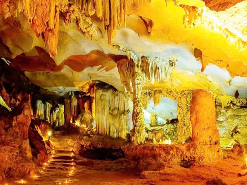 08:00 - Visit “Thien Canh Son” cave - Thien Canh Son Cave is comprised of three caverns in total, each one strewn with stalactites and stalagmites. 200 steps is waiting for your legs, ready to beat it. Walking long the white sand beach and Bai Tu Long paradise view.