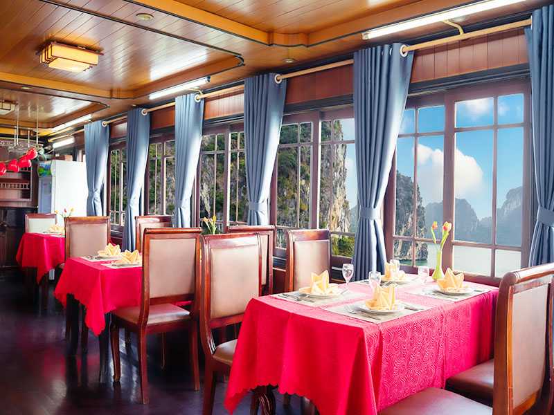19:00 - Dinner will be served in the restaurant in middle of romantic Ha Long Bay. After dinner: Join activities : fishing, karaoke singing ….and Sleep On Board