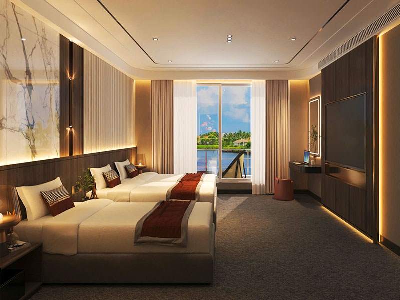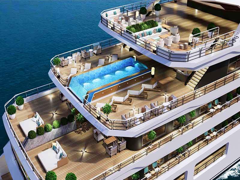 - Luxury cabins with AC, private balcony, sea